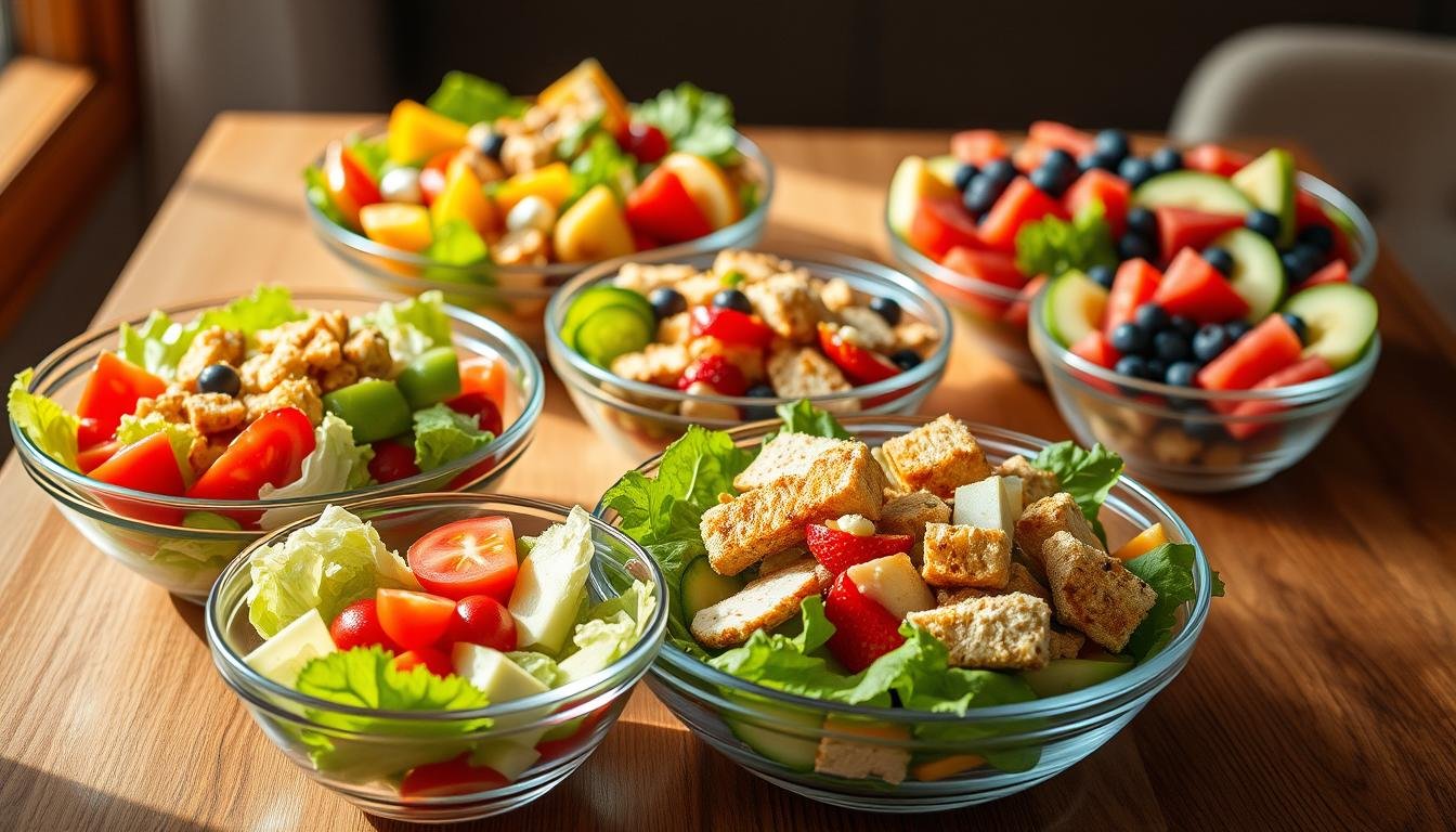 Salads made with fresh ingredients are full of nutrients and low in calories. Ingredients like crisp lettuce, spinach, tomatoes, and apple slices add flavor and volume. They help you feel full and control your portions, making them great for a quick, healthy meal.