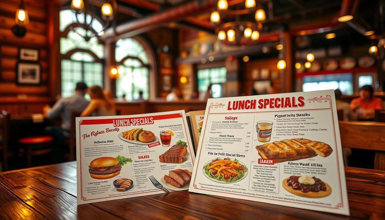 Texas Roadhouse offers lunch specials with smaller portions and budget-friendly prices. You get two sides and fresh-baked rolls. Their menu includes hearty steaks, burgers, and salads perfect for quick meals.